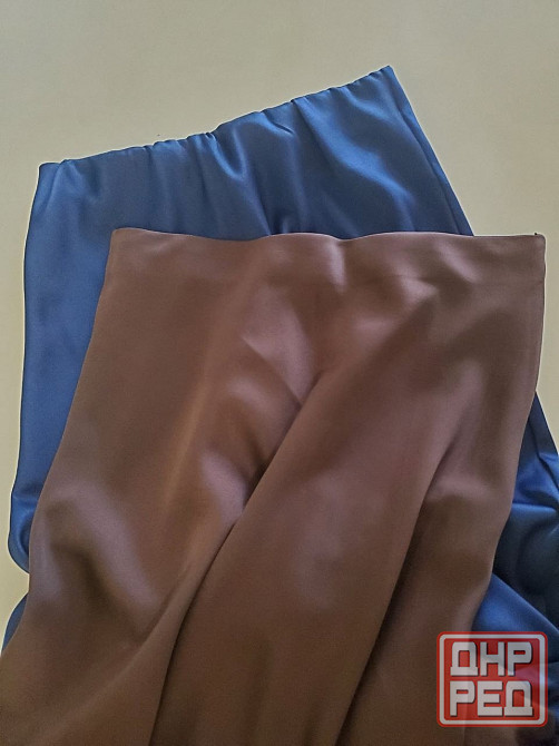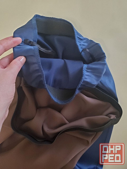 поправилась, не влезаю. надеваются через голову, если у вас большая грудь, то не натянется. резинки бесшовные, очень удобные - не заворачиваются. юбки красиво струятся, ткань искусственный шёлк атласные.