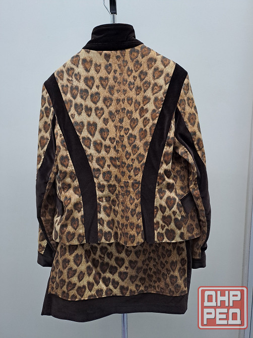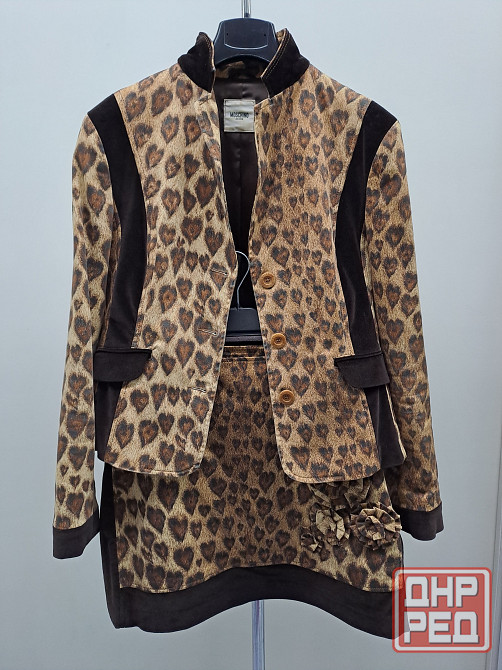 костюм женский 44-46 moschino jeans италия оригинал. жакет и мини юбка с декором, принт леопардовые сердечки, цвет коричневый.