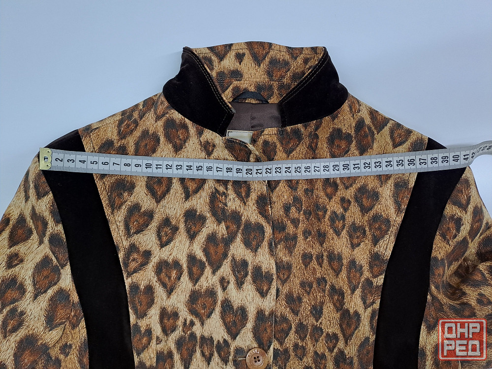 замеры жакета в застегнутом виде: ширина в плечах 41 см. ширина рукава в верхней части 17 см. длина рукава 59 см. ширина жакета в застегнутом виде в области груди 46 см, ширина жакета в области талии 42 см, длина жакета по спинке 56 см.