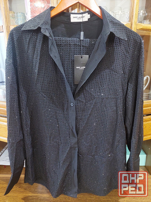 костюм - брюки на резинке,рубашка- блузка. цвет чёрный,красиво мерцает. копия модели saint layrent. р.l или р.48 новый,покупала себе,но не подошёл по размеру