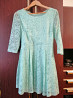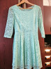 продам платье гипюровое нежное мятного цвета в новом состоянии. на подкладке. размер написан 44. ширина по перейду под мышками 45 см, длина по спинке от плеча примерно 84см, плечи 39 см, рукав 44 см. смотрите все мои объявления. звоните. фен 5299745. есть телеграм.