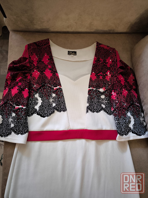 эффектное трикотажное платье производства польши. рукав 3/4 с драпировкой. платье идеально садится по фигуре. одевалось пару раз. по по линии плечевого шва сзади 40 см, длина 110 см.