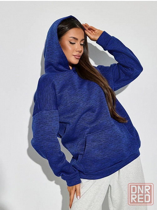 женское худи в свободном фасоне - оверсайз - это комфортная одежда для крутого молодежного образа. базовую модель отличает объемный удлиненный крой, широкие и длинные рукава с манжетами «в рубчик», спущенная линия плеча. у изделия глубокий капюшон и большой карман - кенгуру.