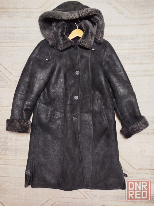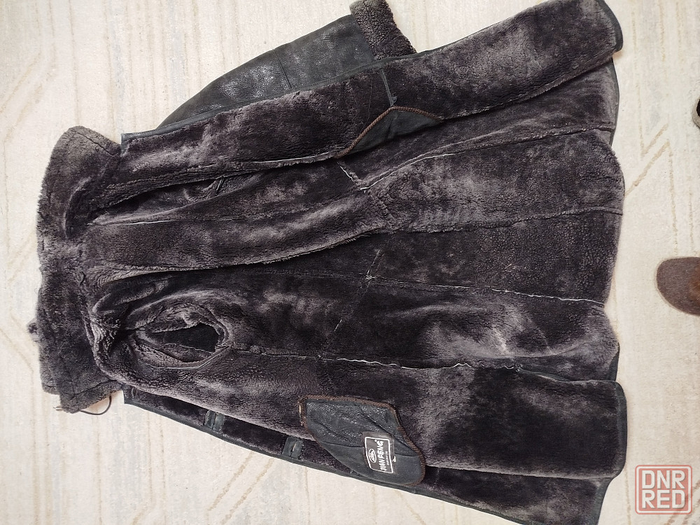 натуральная кожа и натуральная овчина, очень теплая и увесистая, капюшон отстёгивается, длина миди, подойдёт на размеры 48,50 .фасон немного а- силуэт,поэтому на любые бедра. отличная теплая вещь без изъянов.