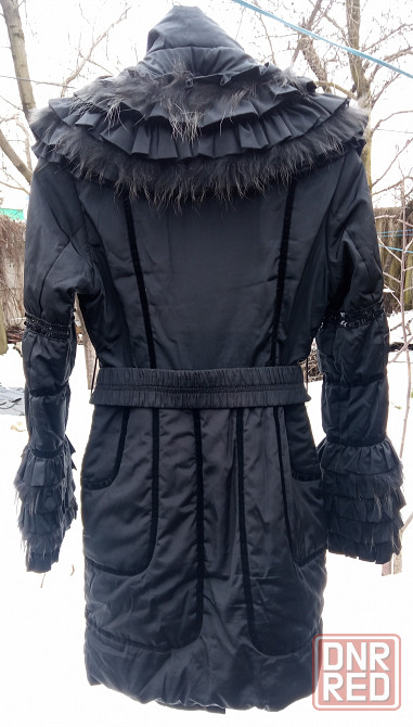 зимнее демисезонное пальто. длина по спинке - 96см, длина рукава -67см, ширина спинки от проймы до проймы -46см. цвет черный.