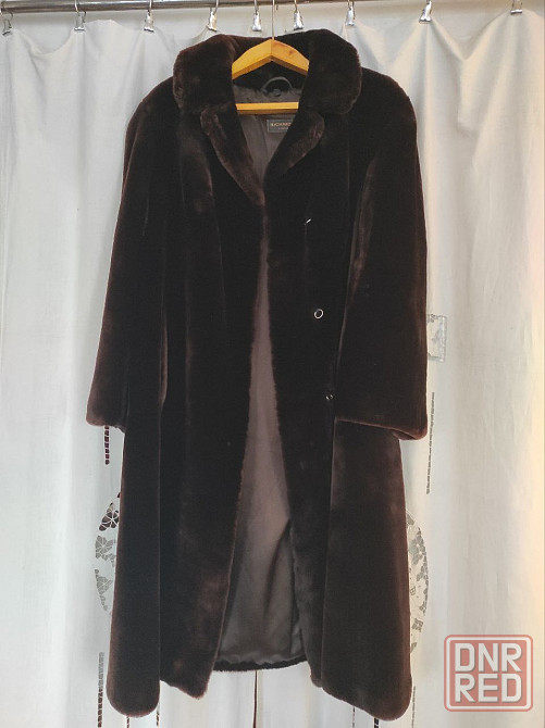 шуба равномерного цвета на фото дефекты от вспышки. цвет темный шоколад. размер 56.