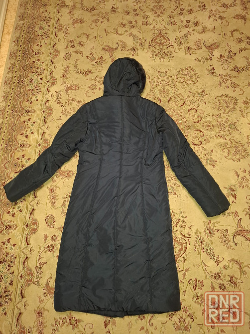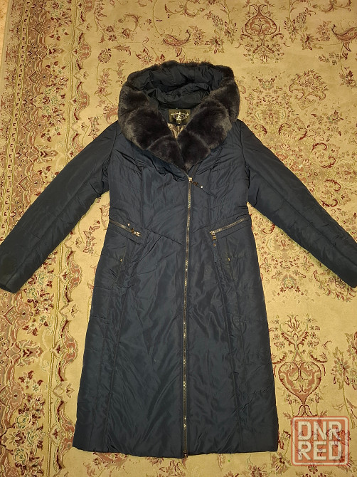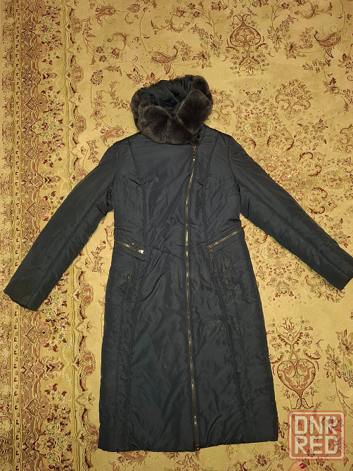 продам зимнее пальто плащ пуховик. тёмно-синий цвет. размер 52-52. мех кролика- отстёгивается. есть пояс.