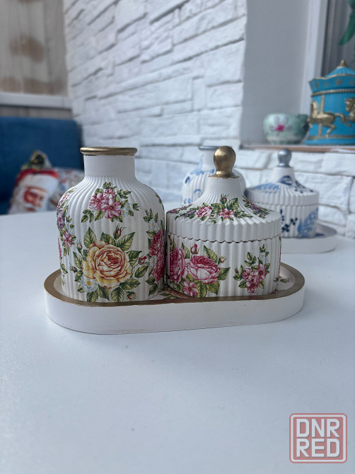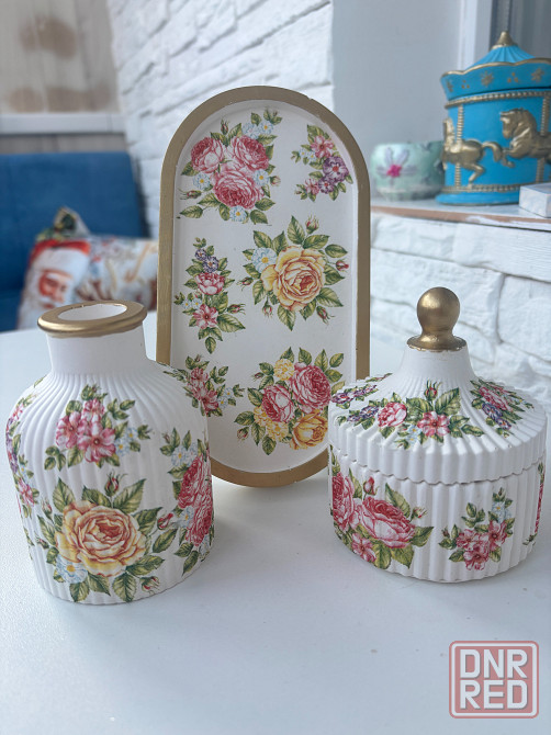 предлагаю готовые наборы для декора из гипса. в набор входит : поднос,ваза,шкатулка арома палочки в подарок. наборы упакованы в коробку