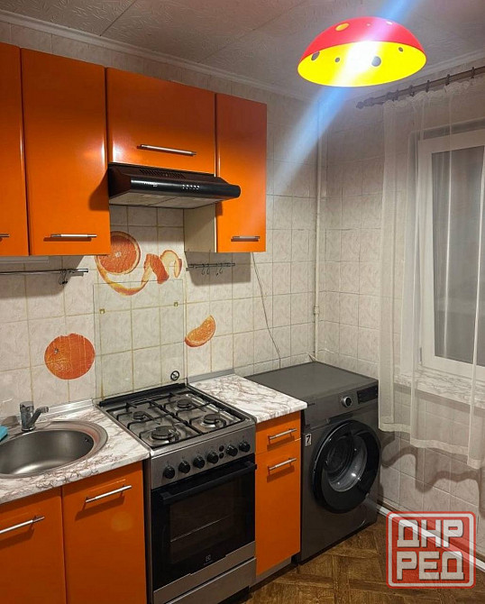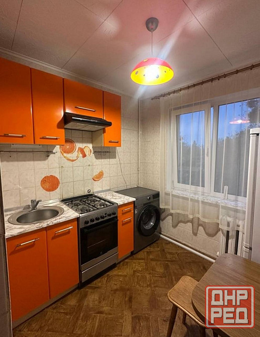 • кухня: яркий и функциональный гарнитур в оранжевых тонах. оснащена газовой плитой с духовкой, вытяжкой, холодильником и современной стиральной машиной. есть обеденная зона.