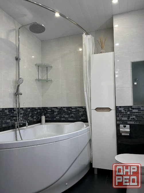 с\у совмещённый, с хорошей и чистой сантехникой, установлен водонагреватель, на период летнего отключения воды, проведен интернет, кабельное телевидение, установлены кондиционеры.