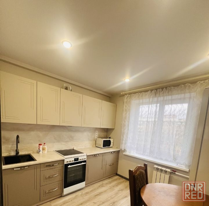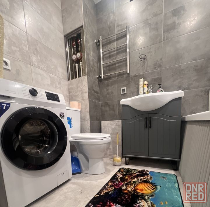 квартира полностью меблирована: современная мебель, холодильник, микроволновая печь, чайник, утюг, фен, телевизоры и стиральная машина. ванная комната оборудована ванной, а совмещённый санузел делает пространство более функциональным.