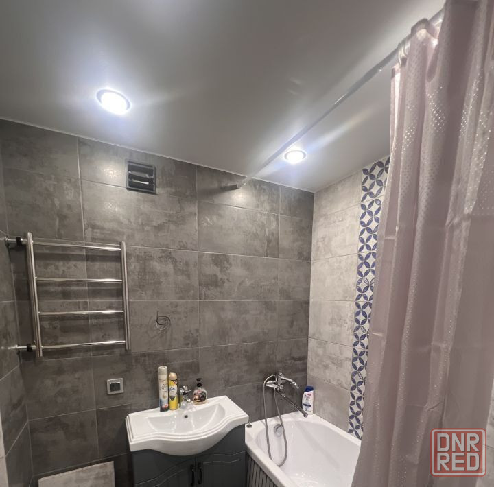 квартира полностью меблирована: современная мебель, холодильник, микроволновая печь, чайник, утюг, фен, телевизоры и стиральная машина. ванная комната оборудована ванной, а совмещённый санузел делает пространство более функциональным.