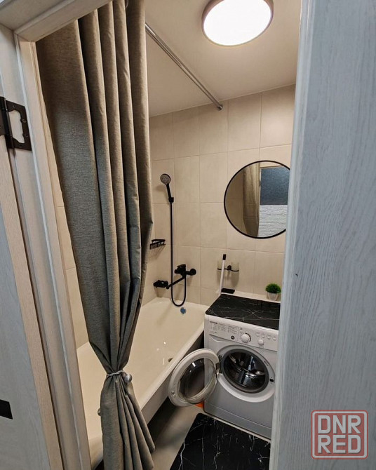обставлена всем необходимым: стиральная машина, холодильник, плита, микроволновая печь; два двуспальных дивана, шкафы, тумба под телевизором, сам телевизор.