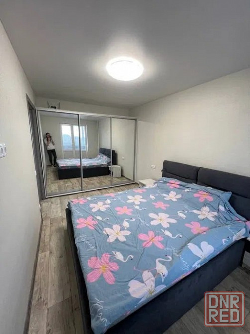 в квартире имеется вся необходимая мебель и бытовая техника, двуспальная кровать, шкаф для вещей.
