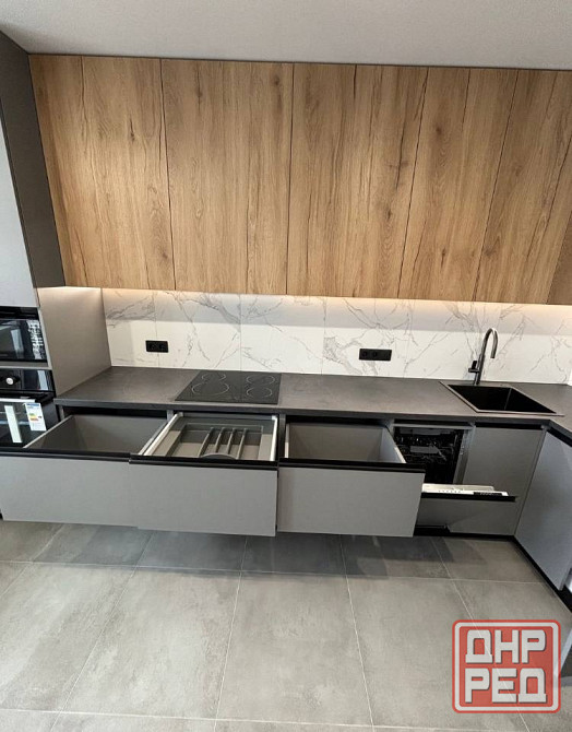 варочная индукционная поверхность, духовой шкаф, микроволновка, посудомоечная машина, телевизоры, вытяжка, холодильник.