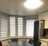 спальня — широкая кровать, шкаф-купе, плотные шторы.