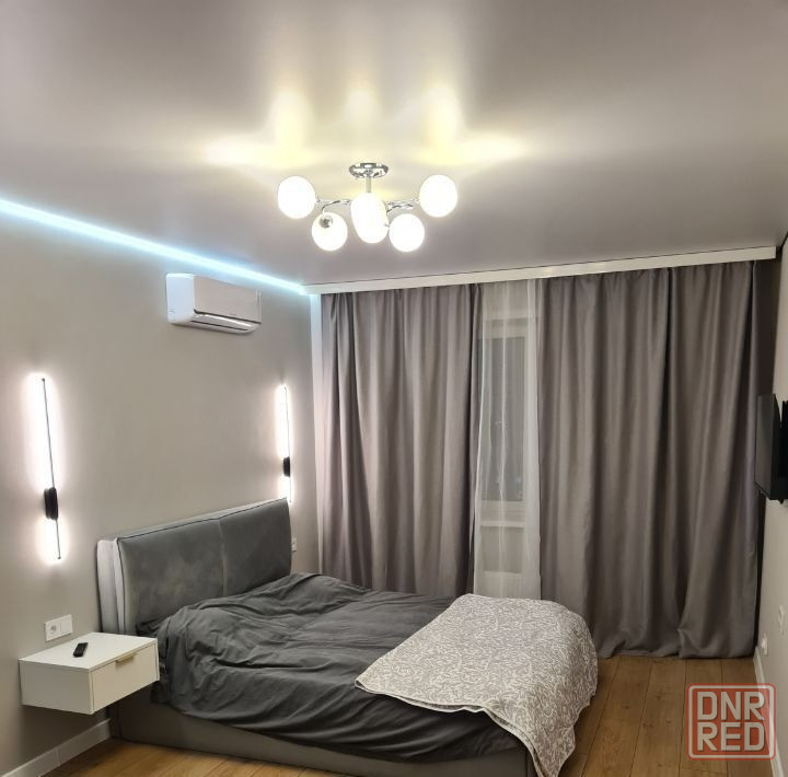 2. мебель: кухонный гарнитур, шкаф-купе, прикроватные тумбы, двуспальная кровать.