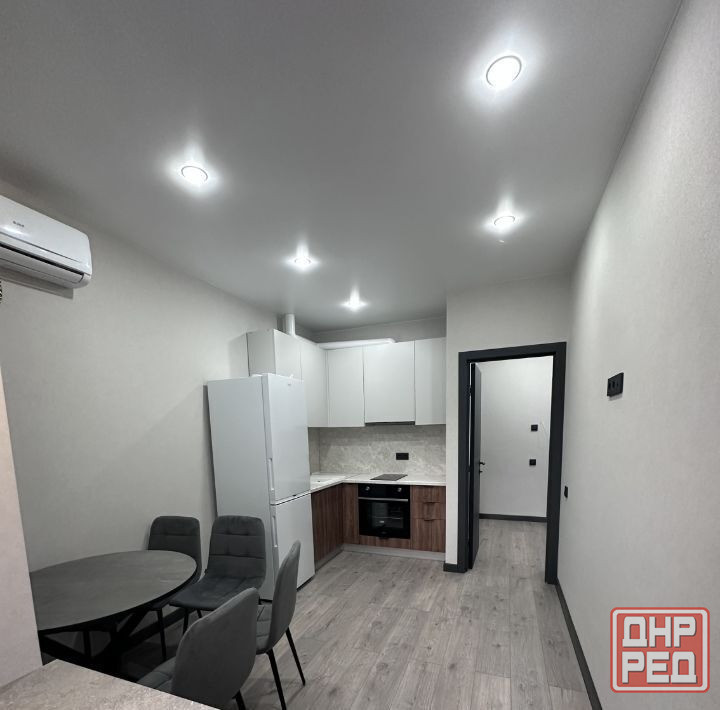 полностью укомплектована мебелью и техникой: современная кухня с холодильником и обеденной зоной; в зале и в комнате — кондиционеры; в комнате — телевизор. 📺