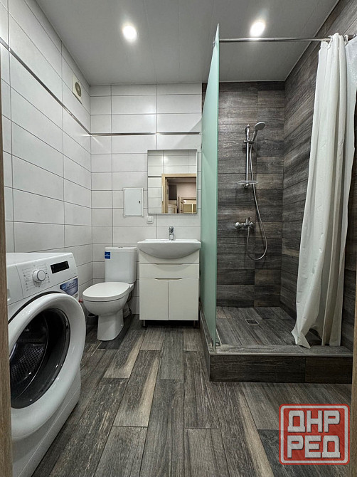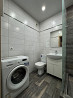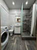 удобная ванная с душевой кабиной, стиральной машиной и всей необходимой сантехникой.