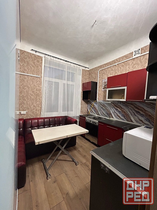 в квартире выполнен свежий косметический ремонт. есть вся необходимая мебель и техника. одна комната пустая. вода по графику, установлен насос в подъезде, установлена газовая колонка.