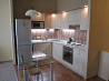 в квартире выполнен качественный ремонт. мебель и оборудование включают: кухонный гарнитур, холодильник, плиту с духовкой, обеденный стол со стульями, электрический чайник, посуду, диван-кровать, шкафы и прочее. в ванной комнате установлены стиральная машина и ванна; санузел совмещен.