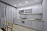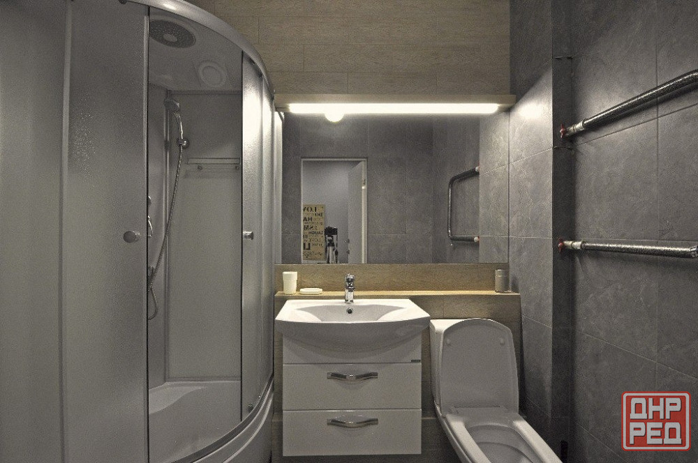 квартира после капитального ремонта, поменяна вся сантехника, санузел совмещен, обшит кафелем, установлен бойлер, стиральная машина автомат, вытяжка, душевая кабина. кухня сделана на заказ, все в едином цвете, установлена электрическая плита, вытяжка, холодильник, обеденный стол, 4 стула. в гостиной стоит диван, стенка для книг, телевизор, прочее. в прихожей стоит вместительный шкаф для одежды и вешалка. общая квадратура квартиры 42м2, 6\9 этаж