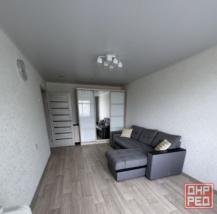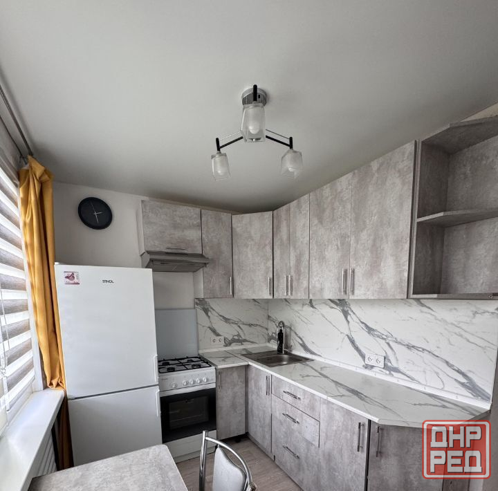 есть вся необходимая мебель и техника, полностью укомплектованный кухонный гарнитур и санузел, вода подается по графику.