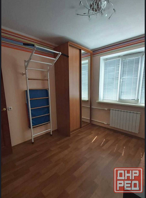 • первая комната: оборудована удобным диваном, комодом и изюминкой для активных людей — шведской стенкой гимнастической лестницей.