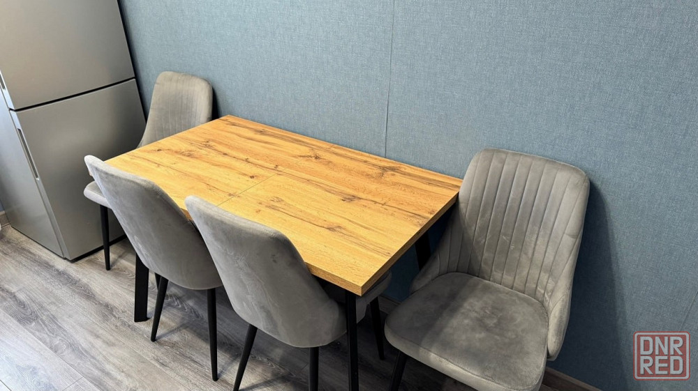 в квартире кухня с техникой: микроволновая печь, холодильник, стиральная машина, есть столовые приборы и столовая посуда. стулья и стол большой раздвижной новый. перед сдачей кухня будет оснащена новой столешницей на всю поверхность включая стиральную машинку.