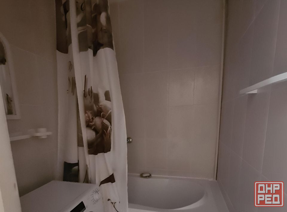 в ванной комнате стиральная машина и ванна. санузел раздельный.