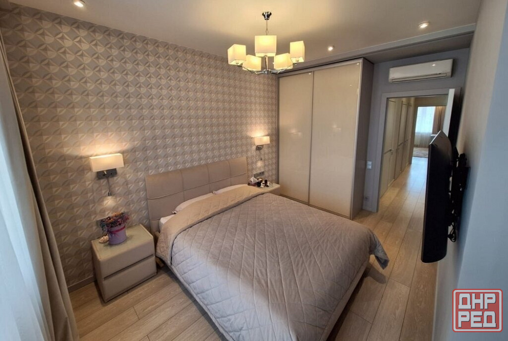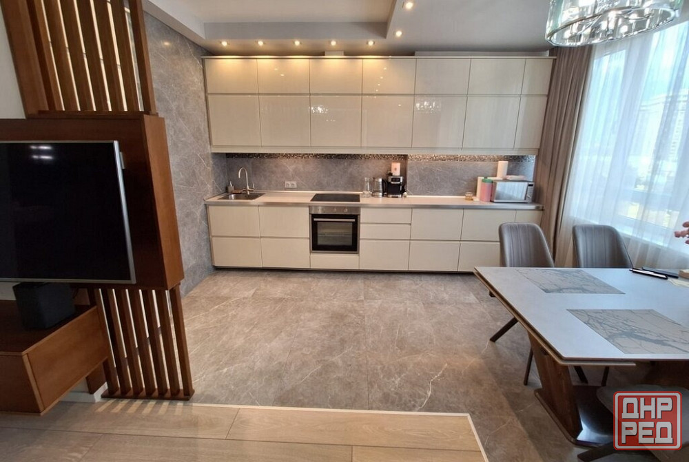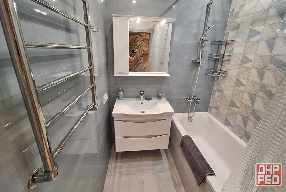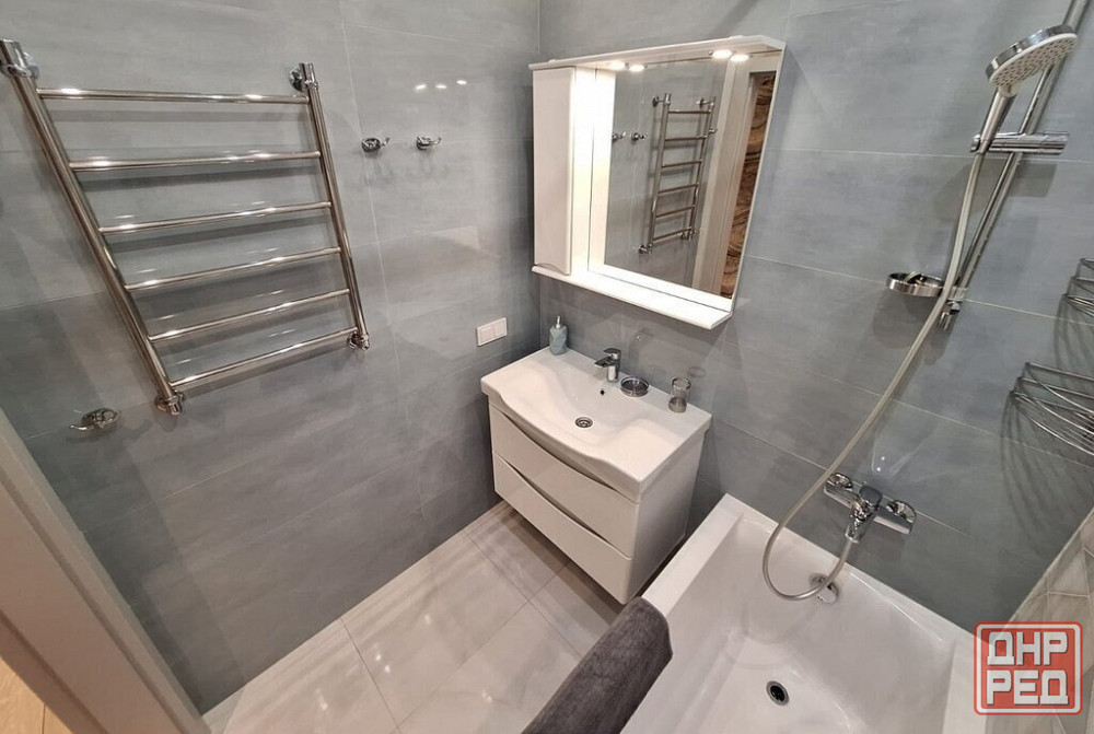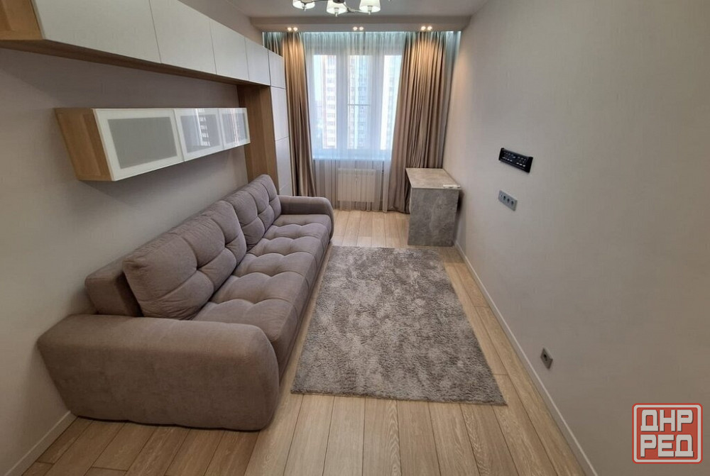 есть вся необходимая мебель и техника: раскладной диван, кондиционер, шкаф-купе, полностью укомплектованный кухонный гарнитур и санузел. также установлен бойлер на фото его не видно, вода идет почти каждый день.