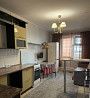 в квартире есть все для комфортного проживания: большой и вместительный кухонный гарнитур с печкой, холодильник, телевизор, диван и обеденная зона, большая лоджия со столиком для чаепития, вместительный шкаф, телевизор, диван двухместный, гладильная доска и шторы на окнах, шкаф с зеркалами для хранения вещей, в ванной комнате имеется стиральная машина, ванна.
