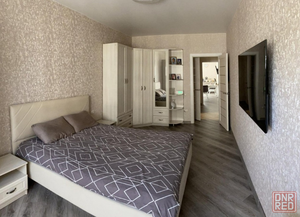 сдаётся евро двушка в будённовском районе. квартира уютная, после ремонта, с качественным ламинатом и свежими обоями. гостиная просторная — диван, тв и тёплое освещение. спальня — большая кровать, шкаф-купе, настенные полки. кухня оборудована всем необходимым, техника работает отлично. в ванной — стиральная машина и новая сантехника. вода по графику.