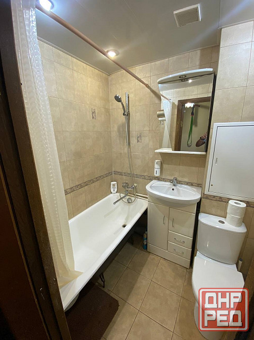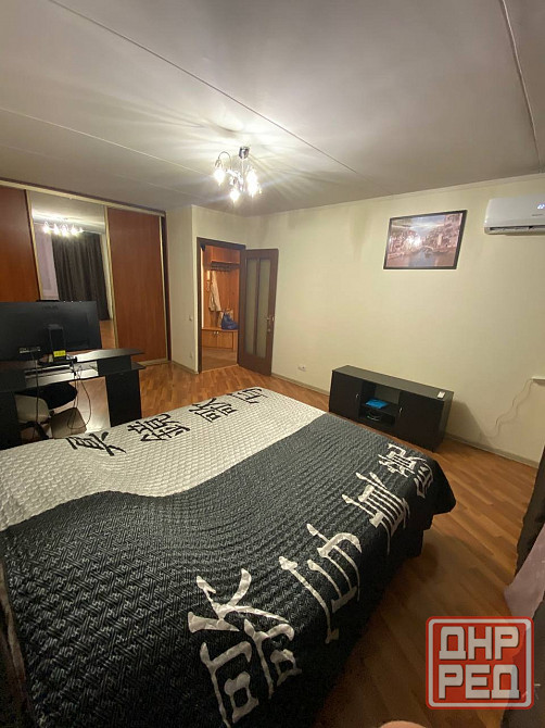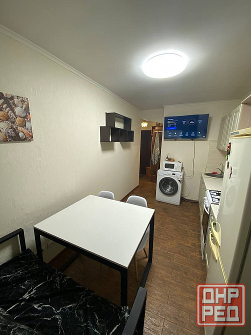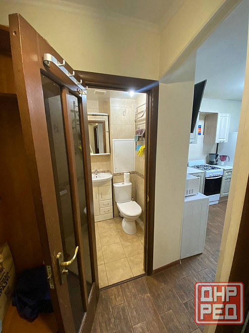 квартира полностью меблирована: имеется кухонный гарнитур, холодильник, плита с духовым шкафом, стол и стулья, электрический чайник и посуда, диван-кровать, кровать, телевизор, шкафы и прочее 🛋. санузел смежный.