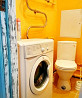 в ванной комнате стиральная машина и ванна. санузел раздельный.