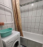 в ванной комнате стиральная машина и ванна. санузел раздельный.