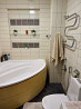 в ванной комнате стиральная машина и ванна. санузел смежный.
