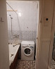в ванной комнате стиральная машина и ванна. санузел раздельный.