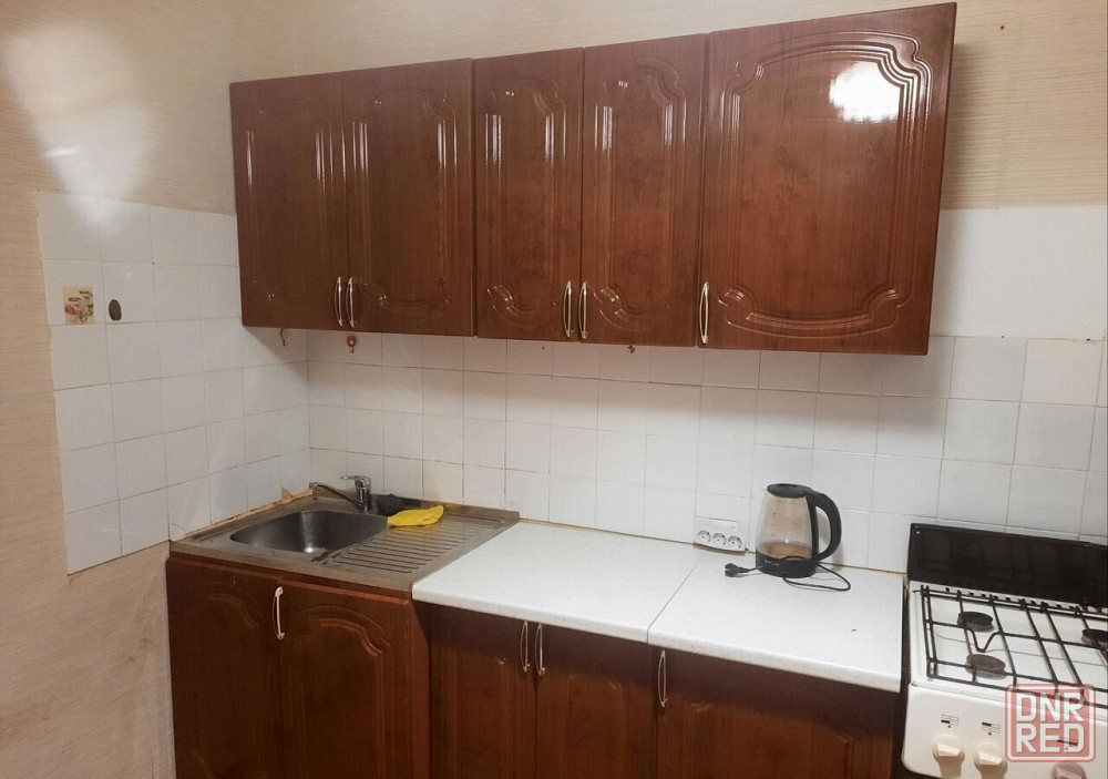 из мебели: кухонный гарнитур, холодильник, плитка с духовой печью, стол и стулья, электрический чайник и посуда, диван-кровать, шкафы и т.д.