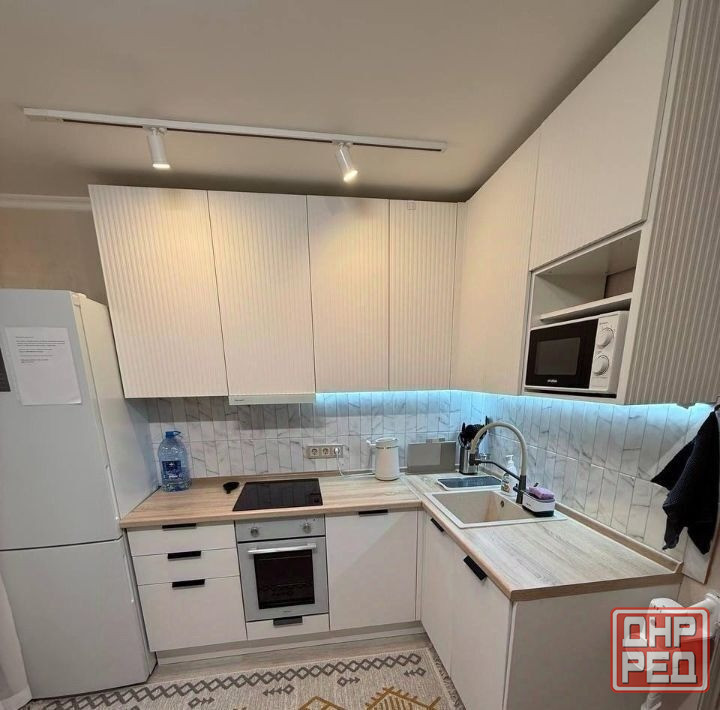 🛋из мебели: кухонный гарнитур, холодильник, плитка с духовой печью, стол и стулья, электрический чайник и посуда, диван-кровать, шкафы и т.д.