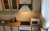 из мебели: кухонный гарнитур, холодильник, плитка с духовой печью, стол и стулья, электрический чайник и посуда, диван-кровать, шкафы и т.д.