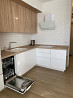 из мебели: кухонный гарнитур, холодильник, плитка с духовой печью, стол и стулья, электрический чайник и посуда, диван-кровать, шкафы и т.д.