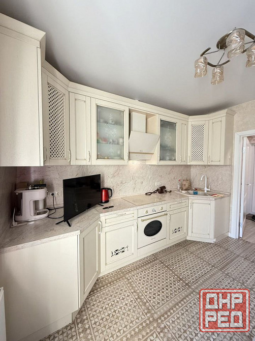 из мебели: кухонный гарнитур, холодильник, плитка с духовой печью, стол и стулья, электрический чайник и посуда, диван-кровать, кровать, телевизор, шкафы и т.д.