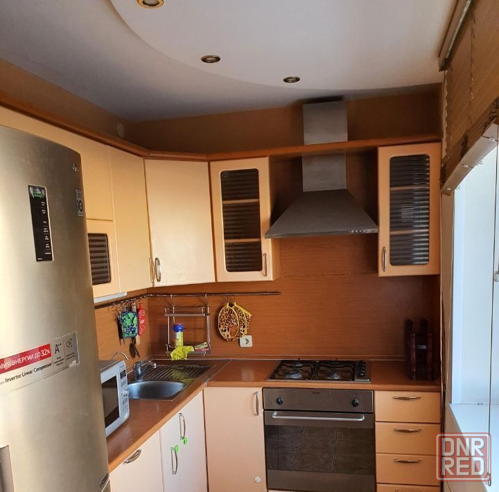 имеется вся бытовая техника,мебель, а также кухонный гарнитур.