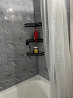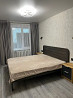 это уютная квартира с современным интерьером. коридор отделан в светлых тонах, с белой кирпичной стеной и паркетным полом. в гостиной и спальне светлые стены и деревянный пол. в гостиной стоит мягкий серый диван, а в спальне — просторная кровать с темной обивкой и прикроватными тумбочками. на кухне — стандартная мебель и техника, включая холодильник, плиту и микроволновую печь. в целом квартира выглядит аккуратно и современно.
