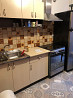 • кухня: стильный кухонный гарнитур светло-зеленые верхние шкафы, бежевые нижние, электрическая плита с духовкой, вытяжка, вместительный холодильник. оригинальный фартук с "кофейным" рисунком создает теплую атмосферу. есть обеденный стол.