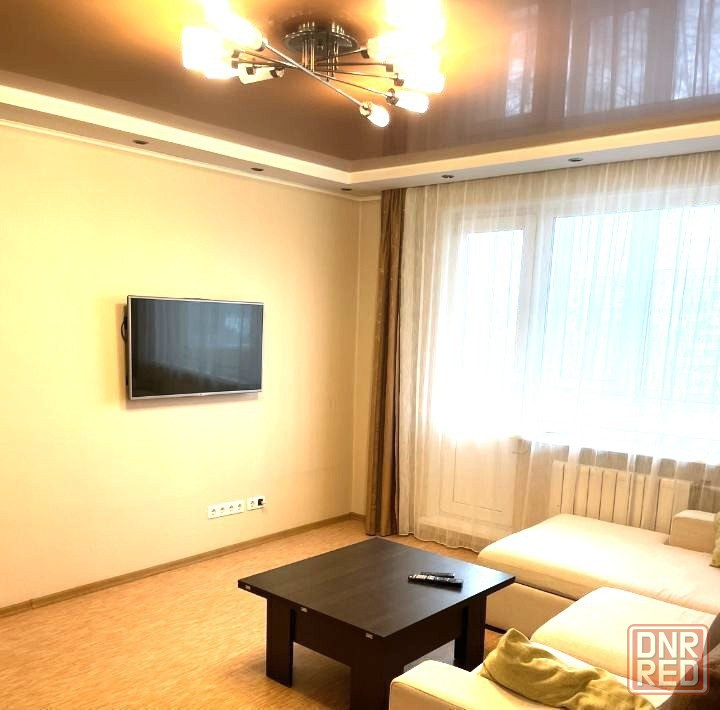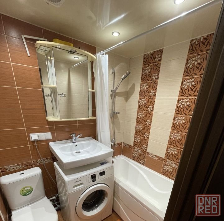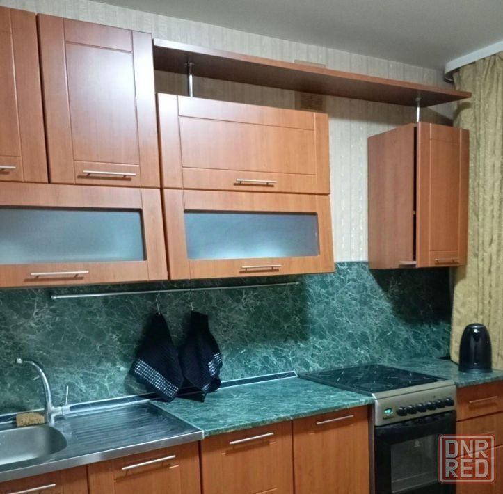 есть вся необходимая мебель и техника:двуспальная кровать с новым матрасом, шкаф-купе, полностью укомплектованный кухонный гарнитур и санузел. также установлен бойлер на фото его не видно, вода подается по графику.