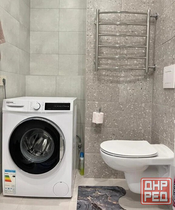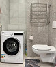 в ванной комнате стиральная машина и ванна. санузел раздельный.