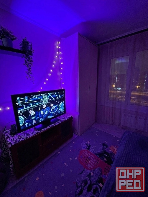 неоновое освещение и гирлянды.