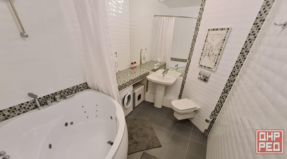 сделан качественный ремонт ламинат, пласт. окна, кафель в ванной, натяжные потолки. кондиционер, холодильник, джакузи, стир машина, телевизор, эл плита, роутер, утюг, чайник, гладильная доска, сушилка и пр. мелочи необходимые для проживания
